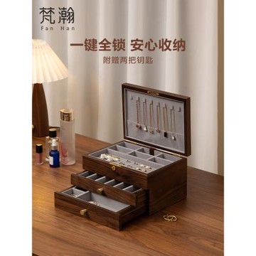 梵瀚 木質首飾收納盒帶鎖大容量復古高級新年禮物黃金飾品珠寶盒