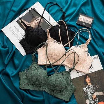 無鋼圈性感前扣文胸蕾絲美背內衣女聚攏加厚款小胸罩2022新款爆款