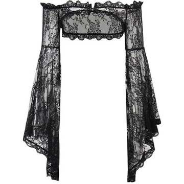 亞比風蕾絲喇叭袖罩衫開衫外套女拼接設計感黑色Lolita一字肩上衣