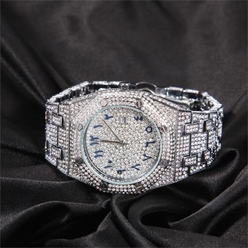 2025年新款滿鉆手表男士嘻哈滿天星奢華大表盤石英表時尚潮流腕表