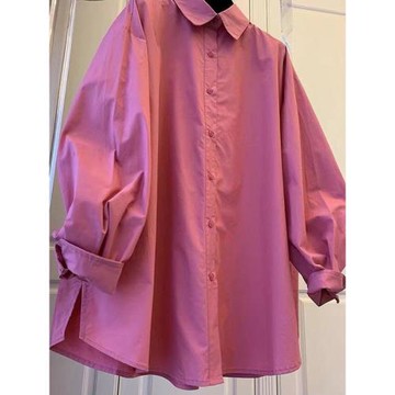 軟奶系粉色襯衫oversize垂感簡約基本款襯衣女法式疊穿高級感上衣