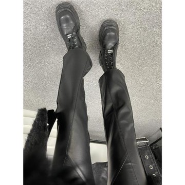 5折*原創解構拼接中腰顯瘦黑色加絨修身九分微喇皮褲