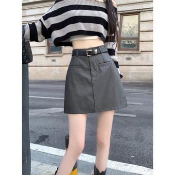 小個子皮裙女短裙秋冬pu皮春季短款超短裙子包臀a字半身裙黑色冬a