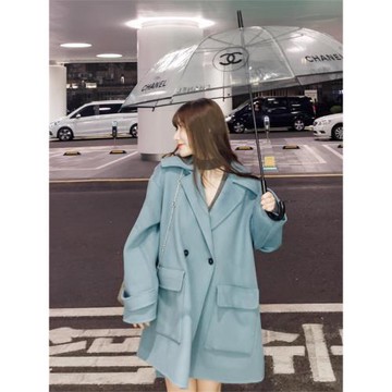 寬松氣質百搭時尚中長款大衣女士秋冬款小個子雙面毛呢大衣