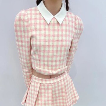 輕甜混色蓬鬆綁帶短版罩衫(FF41L2D1280) - ehka sopo