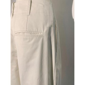 米白色工裝闊腿休閒長褲