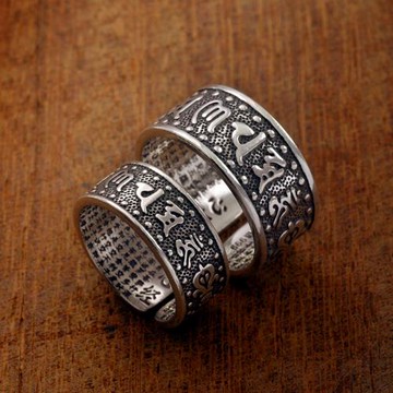 真品 990 純銀佛教咒語指環男女通用寬開口戒指男士