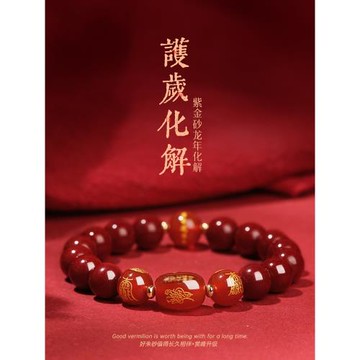 純正真朱砂手串本命年手鏈女特級紫金砂文殊菩薩屬龍本命年兔禮物
