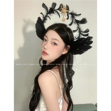 白黑色天使翅膀羽毛cosplay圣誕節服裝飾女穿搭套裝道具游樂場