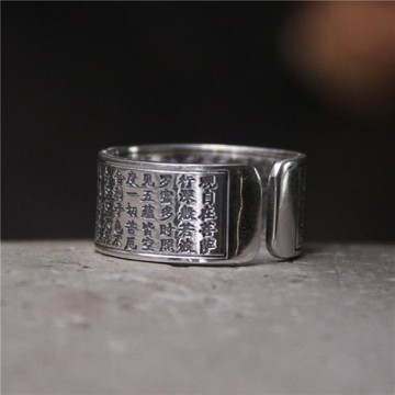 足銀心經戒指女藏式護身平安開口手飾S999純銀泰銀做舊復古指環男