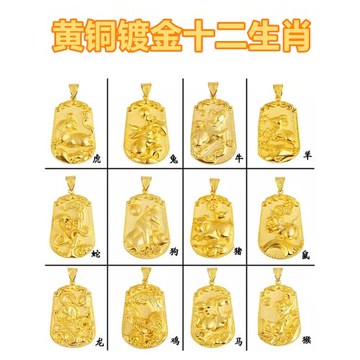 黃銅鍍金十二生肖屬鼠牛虎兔龍蛇馬羊猴雞狗豬本命年佩戴吊墜掛件