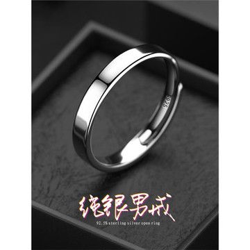 純銀男士戒指可調節單身尾戒白銀食指環潮時尚個性開口簡約光面