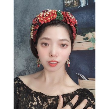 復古酒紅色水晶發箍宮廷風寶石發卡女巴洛克刺繡鑲鉆頭箍海綿防滑