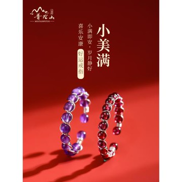 普陀山紫水晶石榴石小眾指戒女碧璽食指中指戒指簡約設計開口指環