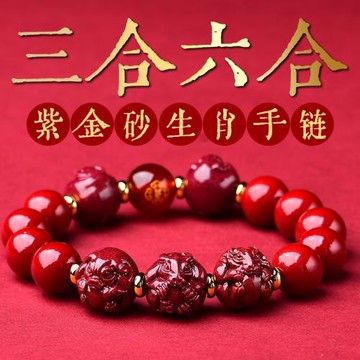 2026馬年朱砂三合手鏈本命年手串六合生肖屬虎豬猴龍馬狗兔雞禮物