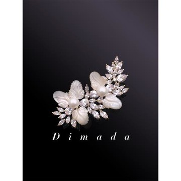 D.M.D/迪曼達母貝珍珠胸針高檔女復古鑲嵌鋯石大衣外套的配飾