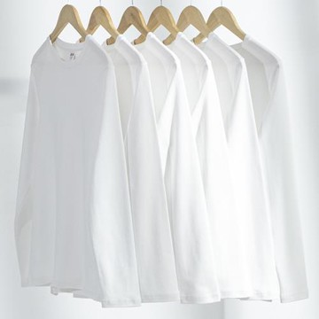 雙面布長袖t恤白色百搭寬松230g重磅厚實打底圓領大碼純色純棉潮
