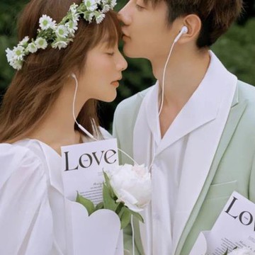 復古時尚清新大方網紅日系婚紗攝影拍照手拿英文卡片花環森系道具