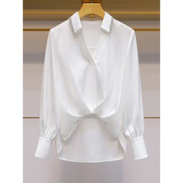 高端輕奢2025新款復古簡約別致寬松上衣氣質通勤設計感白色襯衫女