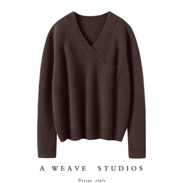 氣質炸裂!穩穩的時髦感!美拉德羊絨衫女寬松v領毛衣百搭羊絨衫
