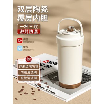 316不銹鋼陶瓷內膽保溫杯女學生便攜隨行咖啡杯大容量吸管杯2023