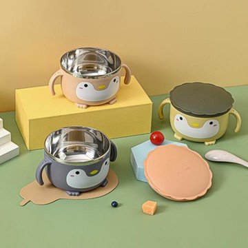 【Goryeo Baby】不銹鋼小雞便捷式密封平碗(兒童學習餐具)