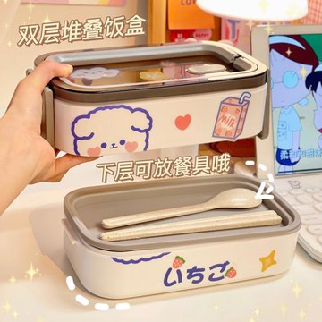 304不銹鋼卡通可愛風小學生飯盒兒童二格便當盒保溫食品級午餐盒