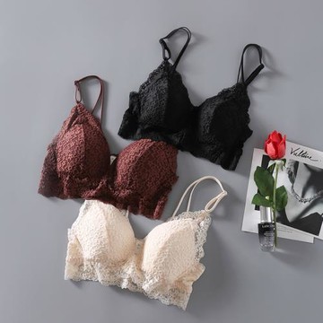 前扣聚攏蕾絲性感文胸套裝無鋼圈小胸少女交叉細肩帶美背內衣罩