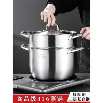 特厚三層復合鋼食品級316不銹鋼蒸鍋一體成型加厚湯鍋帶蒸籠二層