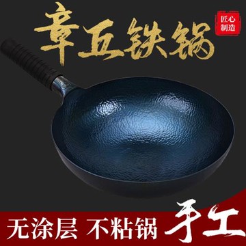 章丘正宗炒鍋不粘鍋無涂層鐵鍋純手工家用手工鍛打老式炒菜鍋圓底