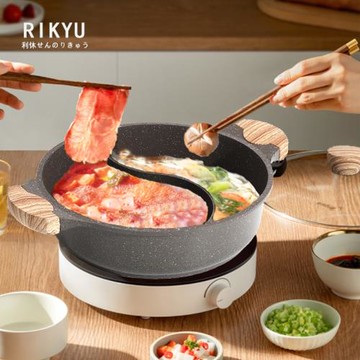 Rikyu日本利休鴛鴦鍋家用火鍋鍋麥飯石不粘鍋電磁爐火鍋盆一體鍋