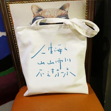 原創自制不過爾爾文字單肩包休閑印花帆布包大容量學生書包拉鏈女