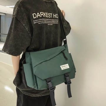 點我下載男士休閑斜挎包潮牌簡約大容量單肩包女新款學生上課通勤郵差包男