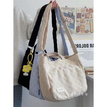 華夫格大容量通勤包日系ins純色小眾少女單肩包包簡約百搭斜挎包
