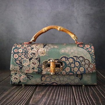 綠玫瑰波士頓手提包改良香云紗純手工制作特色竹子提手旗袍手拎包