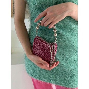 VE家2024早秋韓國小眾設計時髦精雪尼爾毛線編織包圓珠迷你斜挎包