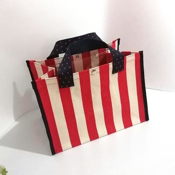 韓國紅白條紋帆布防水購物袋飯盒袋大容量手提包簡約百搭實用方包