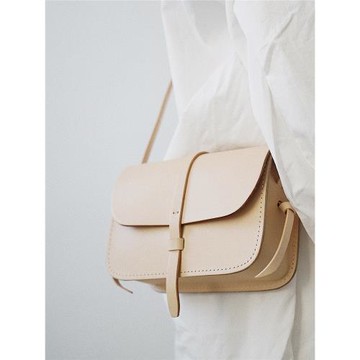 MISKSOLA復古手工植鞣真皮插口斜挎包純色簡約小方包百搭橫款女包