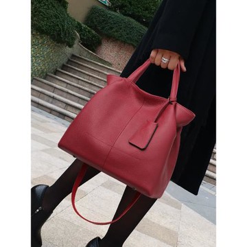 水桶包女2025新款真皮女包酒紅色手提包大容量包包單肩斜挎媽媽包