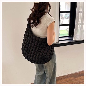 2023新款韓國大號云朵包斜挎包褶皺包大容量羽絨泡泡包托特包通勤