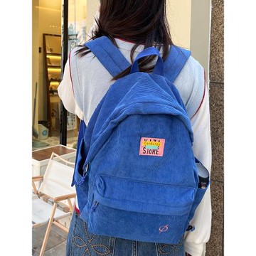YIZISTORE原創燈芯絨刺繡雙肩包男女休閑背包大容量高中學生書包