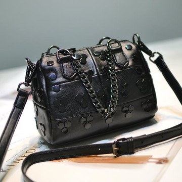 歐美時尚質感204春夏軟皮小羊皮鉚釘鏈條手提單肩挎包迷你小包女
