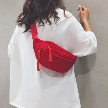 紅色胸包女日系時尚帆布小挎包休閑百搭運動腰包單肩背包斜挎包潮