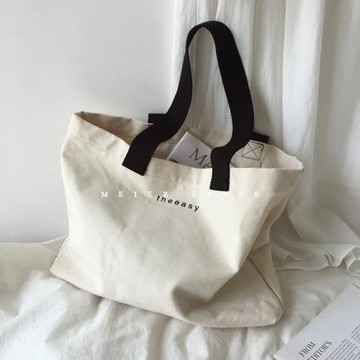 韓國ins簡約字母帆布包大容量單肩包托特包文藝休閑購物袋手提包