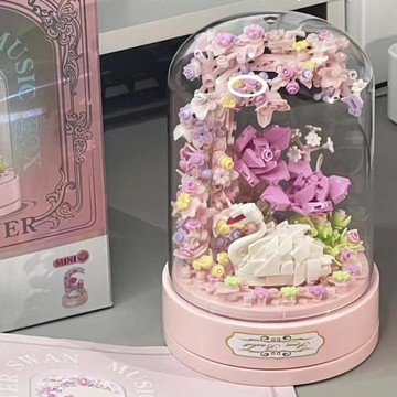 積木花八音盒永生玫瑰花束女孩生日禮物成人版小顆粒益智拼裝玩具