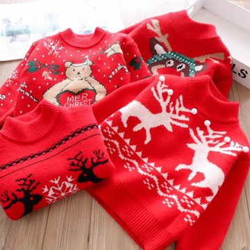 圣誕節~男女童中國紅麋鹿毛衣兒童圓領套頭針織衫上衣2020冬裝新