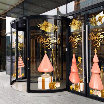 圣誕樹窗貼靜電貼圣誕節裝飾商場店面窗戶裝扮雪花貼畫玻璃門貼紙