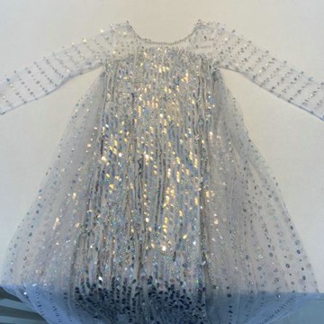 六一兒童節超仙亮片拖地禮服裙女童白色長袖公主裙生日連衣裙演出