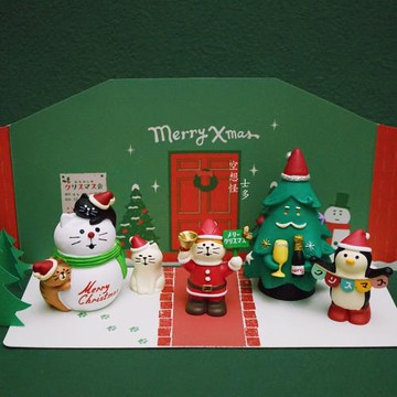zakka日式圣誕節昭和貓咪圣誕派對雪人圣誕老人蛋糕裝飾柴犬擺件