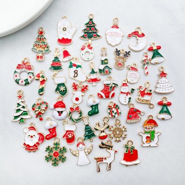 混100個圣誕系列雪人禮物麋鹿合金滴油吊墜diy飾品配件鑰匙扣掛件